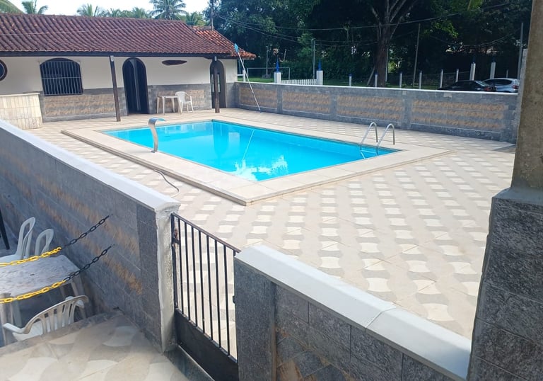 Piscina ampla e refrescante para toda a família aproveitar momentos de diversão.